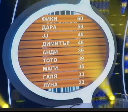 Винаги казват, че  това шоу не е за пеене, а за имитиране. Снощи Димитър изигра образа перфектно,  но всъщност журито  оцени  пеенето му. Маги  пя много добре, представи си великолепно, но нали шоуто не е за пеене. Не мога да ги разбера. Как да ги разбера като Дж- дж нито пя, нито направи нещо артистично, но Хилда му даде 7 или 8 не помня точно.
