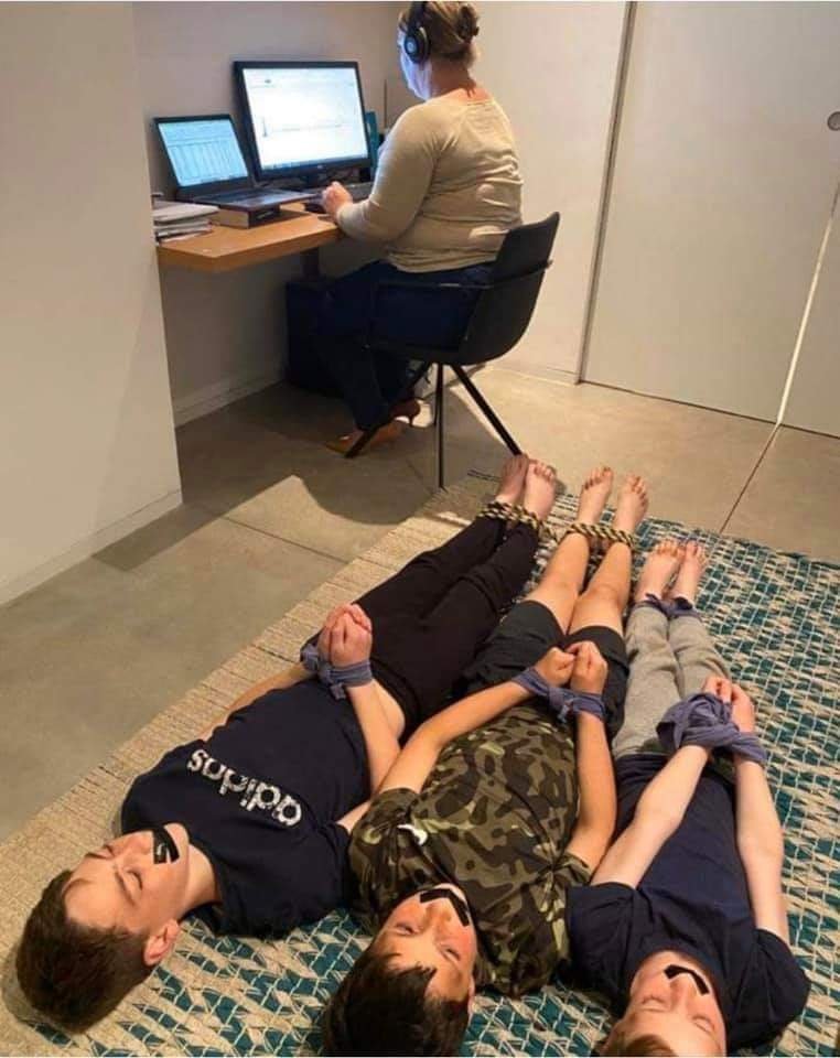 Вариант (работещ!) при важна среща онлайн в условия на хоум офис с елементи на карантина и налични няколко броя наследници в малолетна възраст.