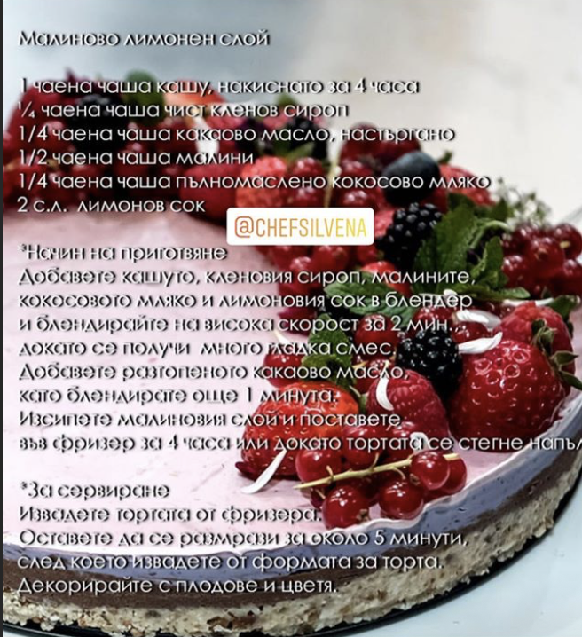 Тортата изглежда много вкусна, но освен скъпа, е пълна и с индийско кашу към което имам зверска алергия. А така апетитно изглежда.