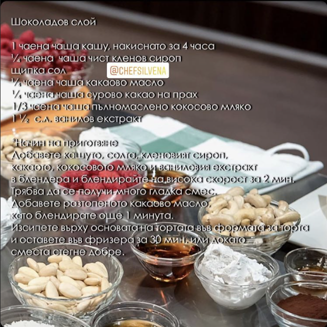 Шеф Роу е качила в инстаграм рецептата за десерта, който показа във вторник. За тези, които нямат профил, но се интересуват, снимките са в скрит текст.