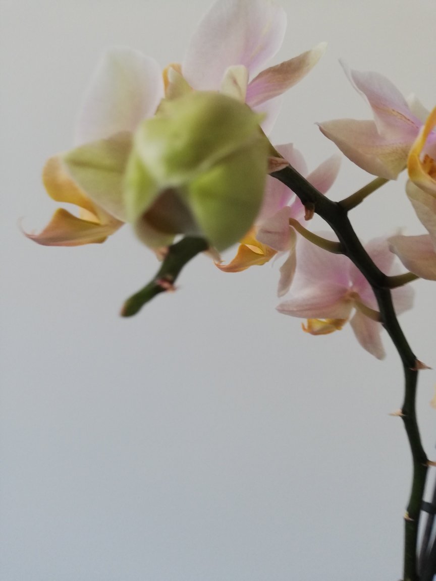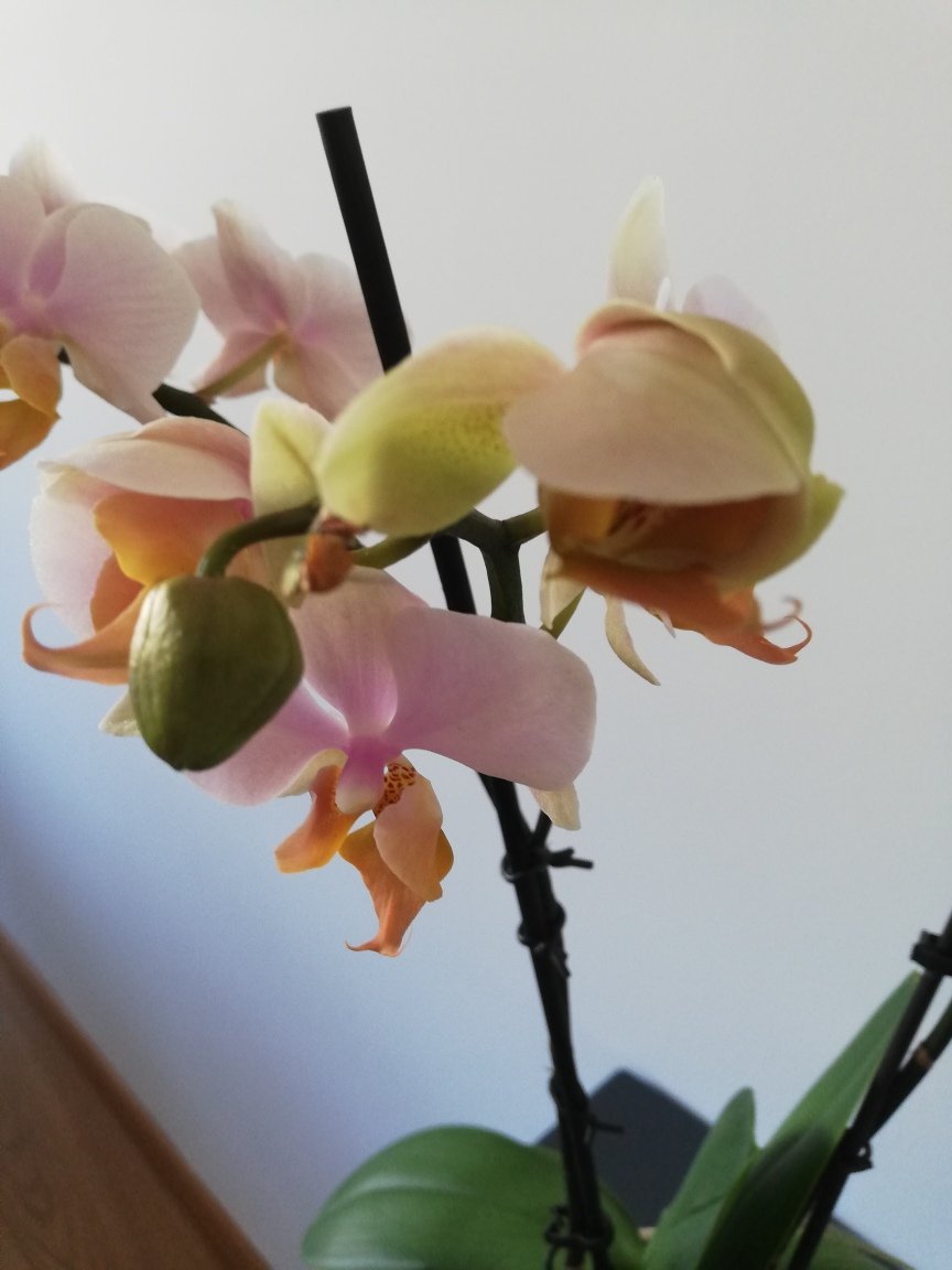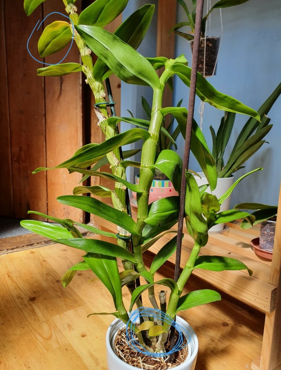 Поливайте орхидеята веднъж седмично, като се уверите, че водата напълно се оттича от саксията. Ако няма достатъчно светлина, осигурете допълнително LED осветление. Избягвайте пряка слънчева светлина, тъй като тя може да причини пожълтяване на листата. При пресаждане няма строго правило - някои го правят веднага след получаване, други изчакват края на цъфтежа, а трети изобщо не го правят.