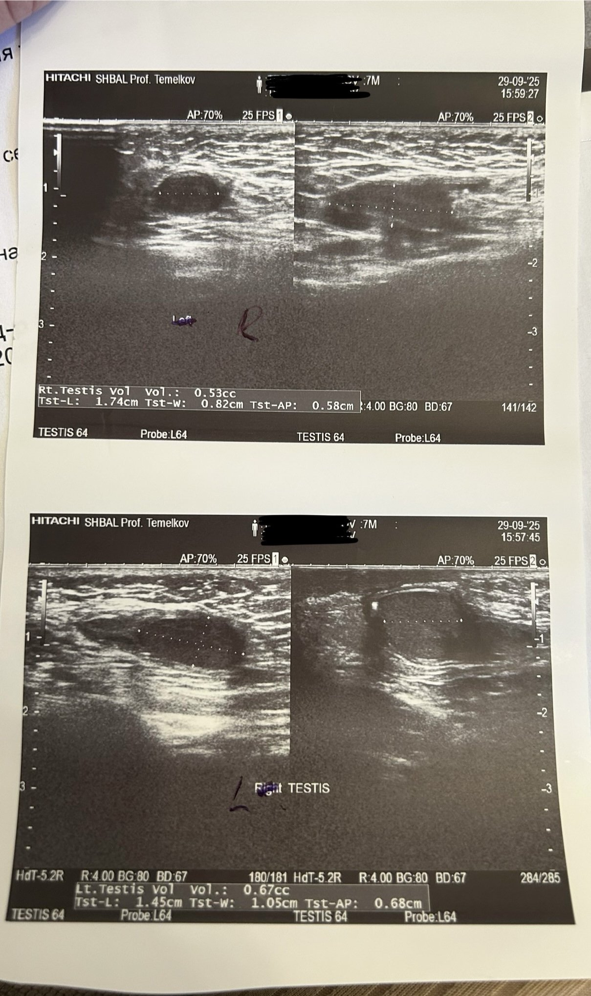 Здравейте, Д-р Бранков! Отново Ви пиша с молба за съвет! Днес направихме контролен преглед при ехограф и размерите са следните: обем 0.31 cc, 1.17/0.84 см. и 0.63 cc, 1.50/0.92 см. Вижда се намаляване на обема, бебето ми вече е на 10 месеца. Направи ми впечатление, че при първите измервания доста сянка е била прихваната (прилагам снимки), докато сега не, но дали може на това да се дължи. Как бихте ми препоръчал да процедирам и дори с тези размери, ще се запази ли функцията на тестиса според Вас след операция? Също, ние сме от гр. Варна и се чудим дали по-добрият избор, с оглед дългия път е да го оперираме тук при Румен Христов или да дойдем до София при Вас? Благодаря предварително!