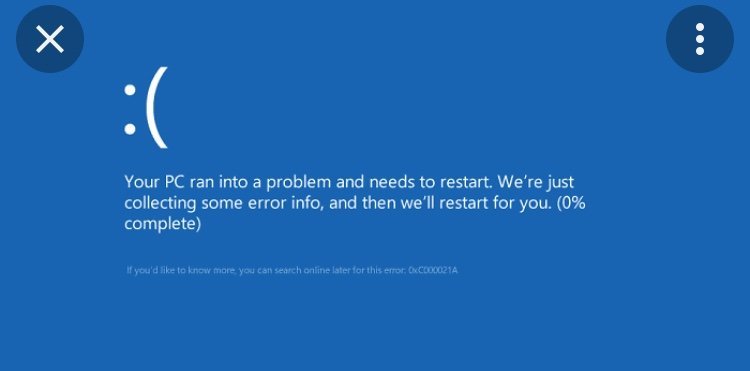 Здравейте! Лаптопът ми нещо даде фира, когато видях, че батерията се е заредила и го изключих от захранването. Веднага след това се появи син екран с “:(..” Прикачам снимка от нета. Моля за помощ.