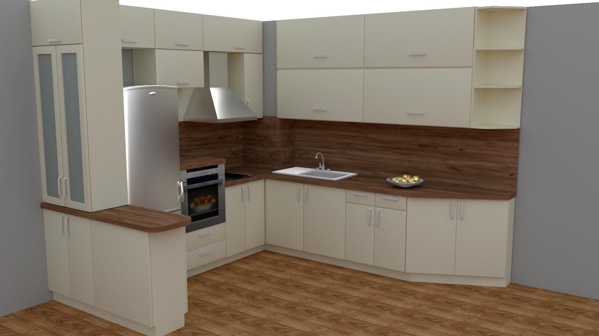 1. ако преместиш частта на кухнята в дясната страна ще нарушиш идеята за скосяванията, които имат завършващия ред шкафове, и няма да е добре. Останалите ти шкафове нямат стъкло, а само тези, чудех се какво ли има от другата страна на стъклените шкафчета (там откъм хладилника)