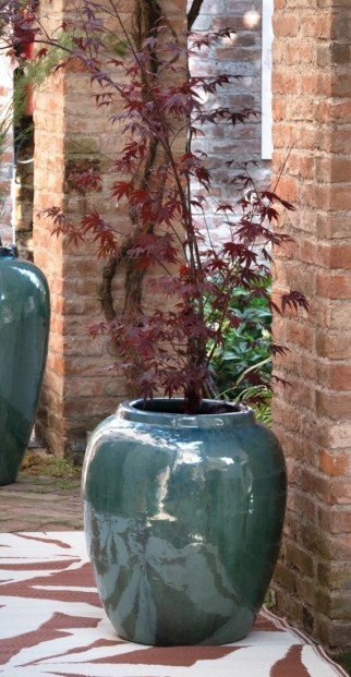 Липсва ми  и едно  голямо цвете, там където е футьойла, или на освободеното от бюрото място. Цветът на саксията избери сама, има много интересни саксии, керамична, може и с някакви мотиви с тюркоазено и тъмно червено, да обединиш тези два цвята, защото не си подхождат. Може и груба керамична саксия, дори бяла, да подхожда и на белите тухлички.