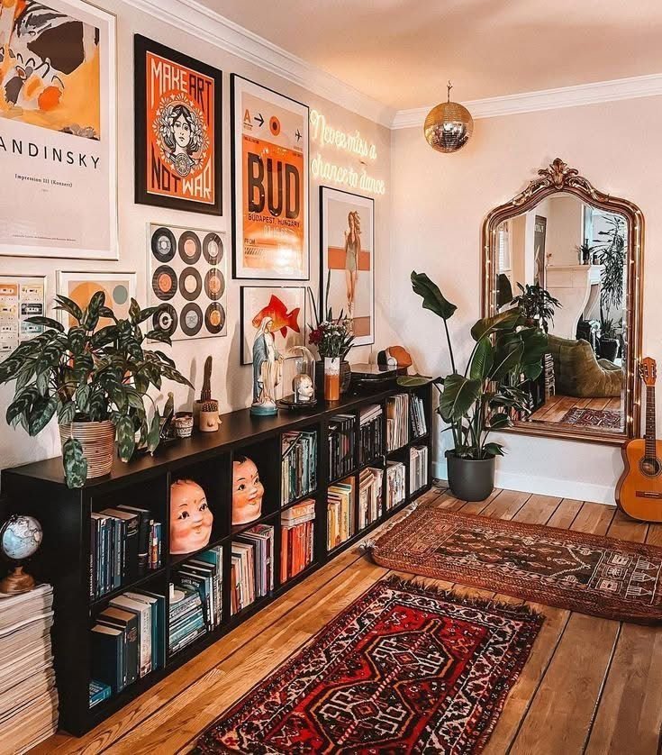 Още една тенденция - библиотеката се завръща в дневната, а няколко предмета или едно старо огледало могат да оживят пространството...