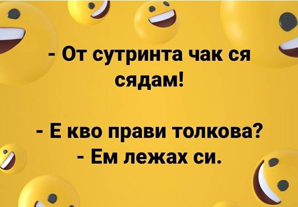 Сички сми изнервени у къщи и чат-пат си посъсквами. Утделну ме е хванала щръклицата и ставам рано-рано. Пууу, ша луднем.