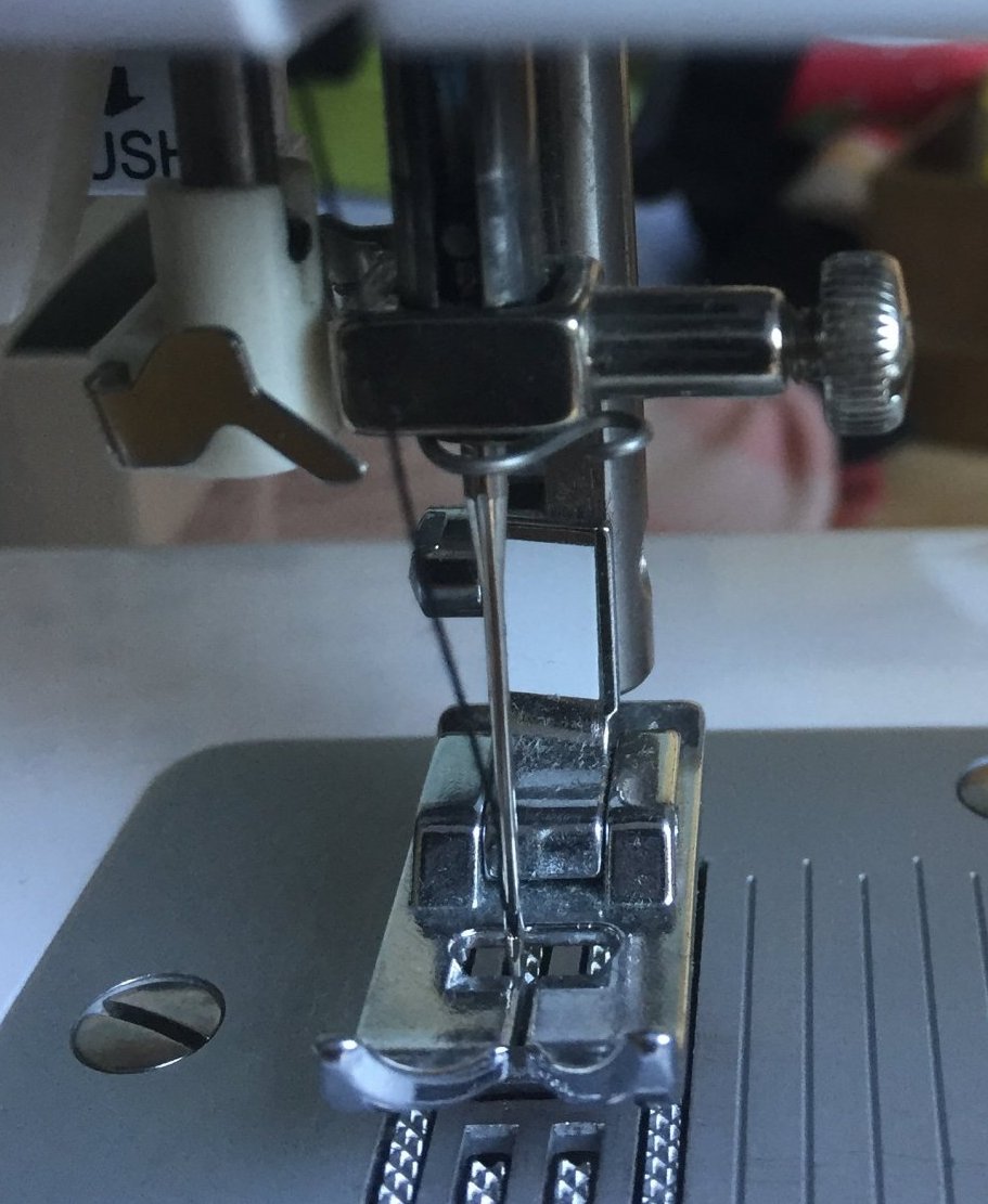 Като махнах пластината видях, че е наранена, точно където влиза иглата даже имаше малко ръбче, явно като съм шила и счупила игла се е получило. Опитах се да го загладя, но другаде е проблема. Горният конец се закача някъде около совалката. Не излиза, а остава прискрипан.