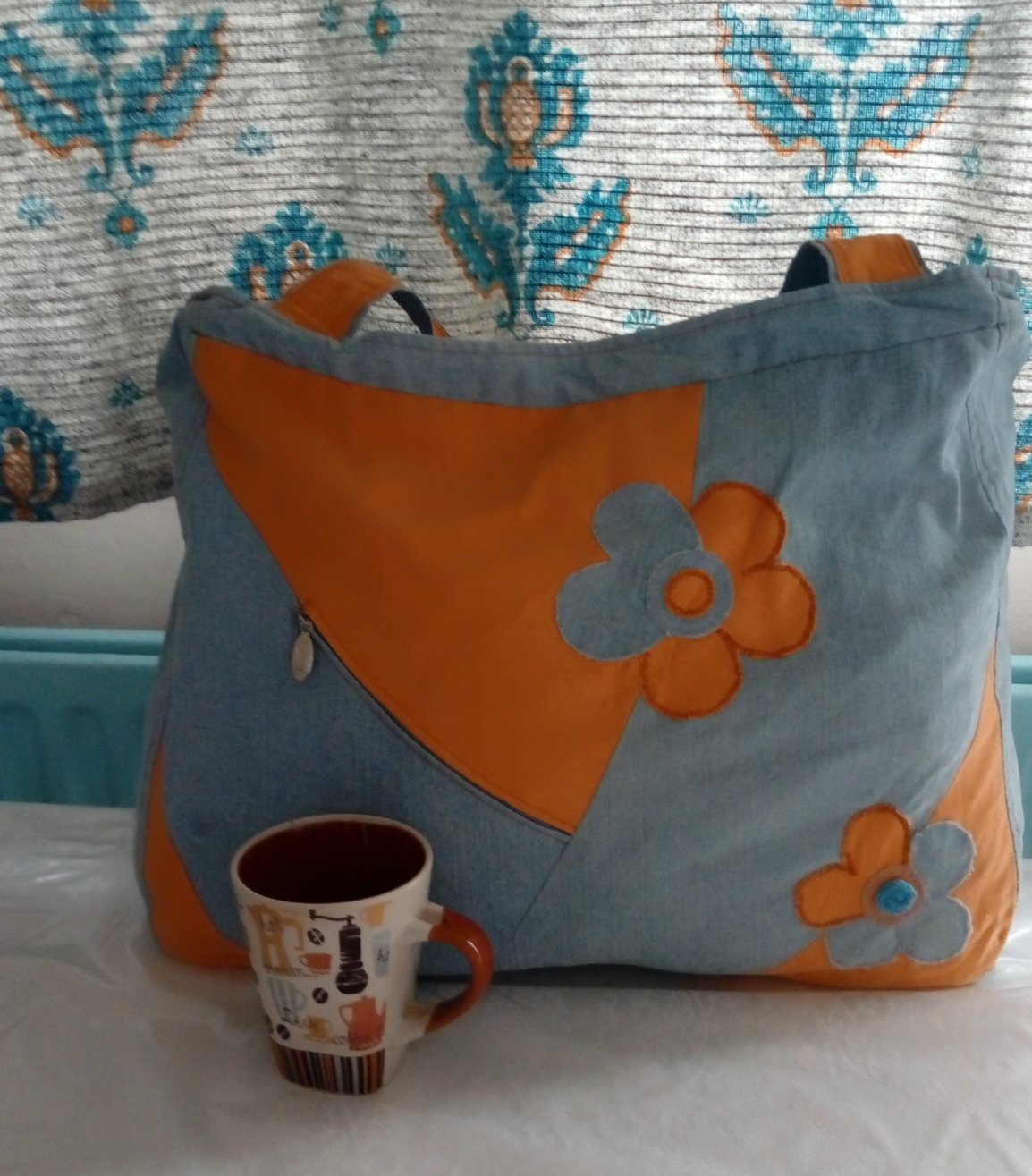 Приятелката на сина ми имаше нужда от ремонт на нейната раничка. Дадох ѝ парче от вълнения плат да си го нарисува и ѝ подмених скъсаното. Много ми хареса как стана. Те пък ми подариха боички за текстил и четки и така започна да се заражда идеята за русувана раничка. Чак сега ми се избистри идеята какво да рисувам, че ми е за първи път. Най-лесни са торбите с дълги дръжки и за рисуване и за шиене, но ме боли гърбът като мъкна само на едното рамо. Иначе от дънки имам ушити една малка чанта и една голяма плажна, която ползвам и за пътна чанта обикновено. Пак са тотални рециклачки. Утре може да ги снимам да ви ги покажа и тях.