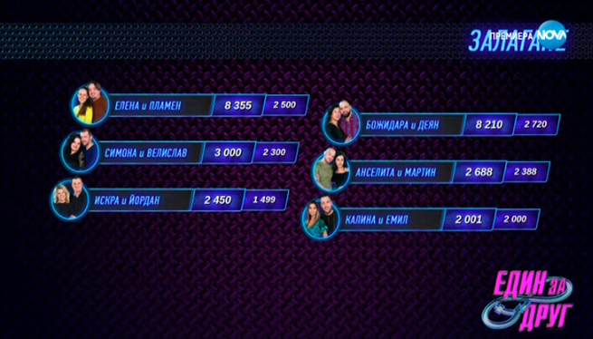 Иначе Иска отново подходи хитро и стратегически със залога. Но трябва да разчитат на провал на по една двойка измежду Анси/Марти ; Симона/Вели и Калина/Емо.