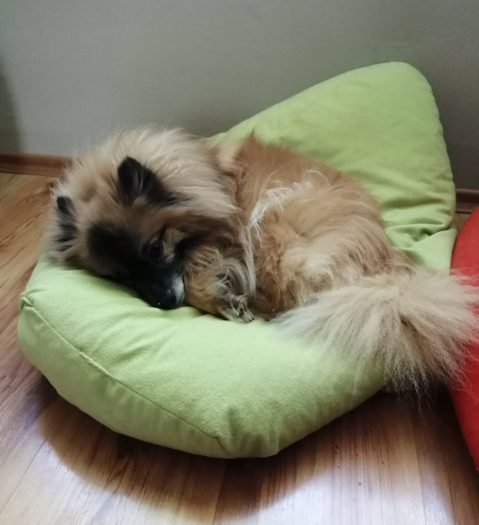 Като заговорихте за легла - Арчи имаше много хубаво легълце. Спеше си на него, удобно му беше. Докато постепенно не започна да го унищожава. Направи го на нищо. Пак ще му вземем, но като поотрасне още малко. Сега съм му дала една възглавница, но почти не спи на нея. Друго си е на леглото при мама и тате. Лигльото той.Smiley