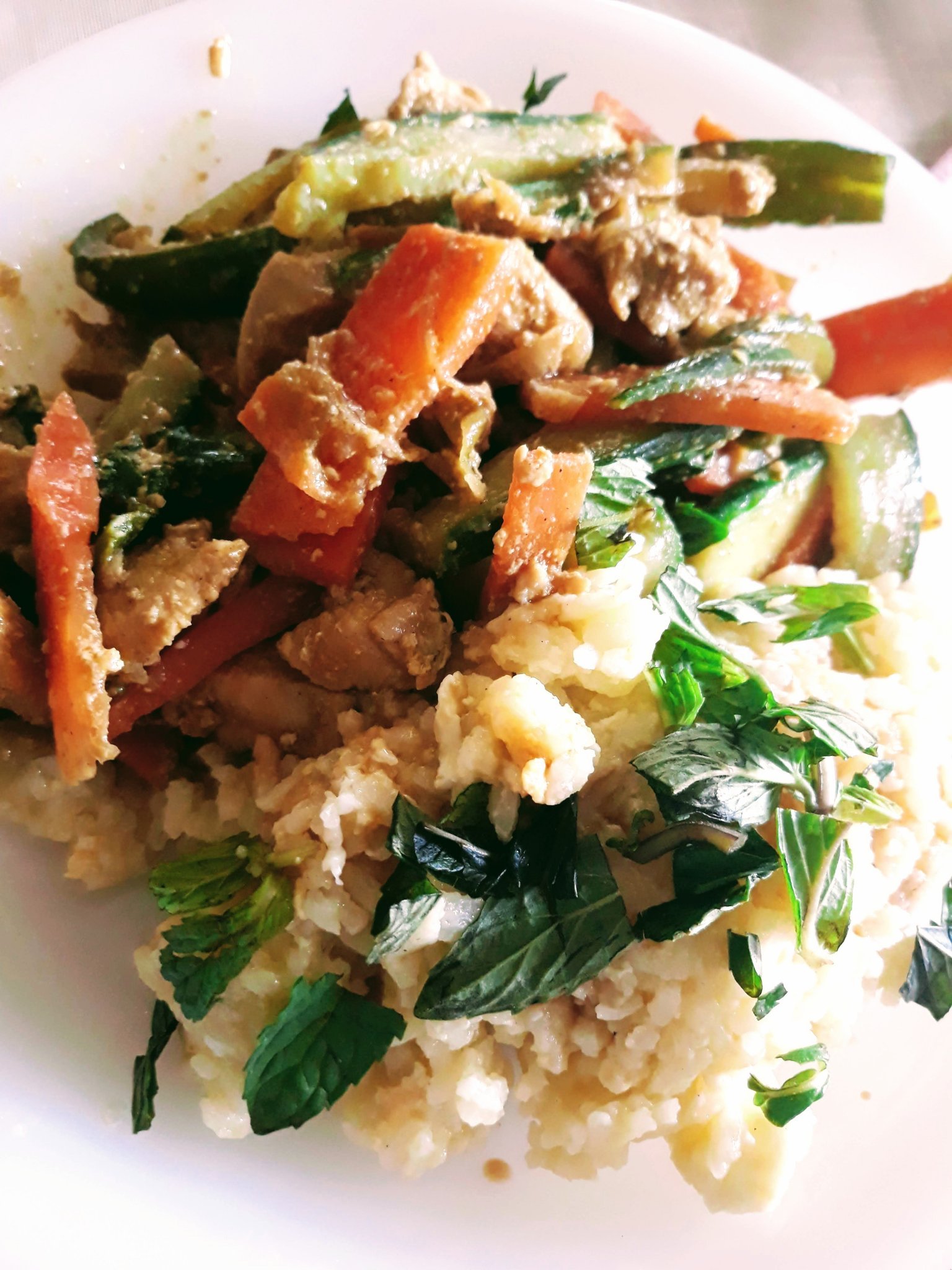 Днес, обаче, от мен пиле със зеленчуци и яйце по китайски + ориз по китайски. Малиново-боровинков чийзкейк, ама за сутринта. Че нали сме все модели из дома, пазим се. Laughing