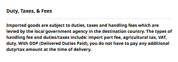 Когато доставката е DDP това означава, че всичко е платено и не дължиш нищо,  VAT влиза в duties/taxes. Такъв тип е доставката, когато  поръчвам от iherb с предплатени такси и никога не е имало проблем на митницата в Англия или Германия (дори днес са ми доставили една пратка до немски адрес на превозвач)
