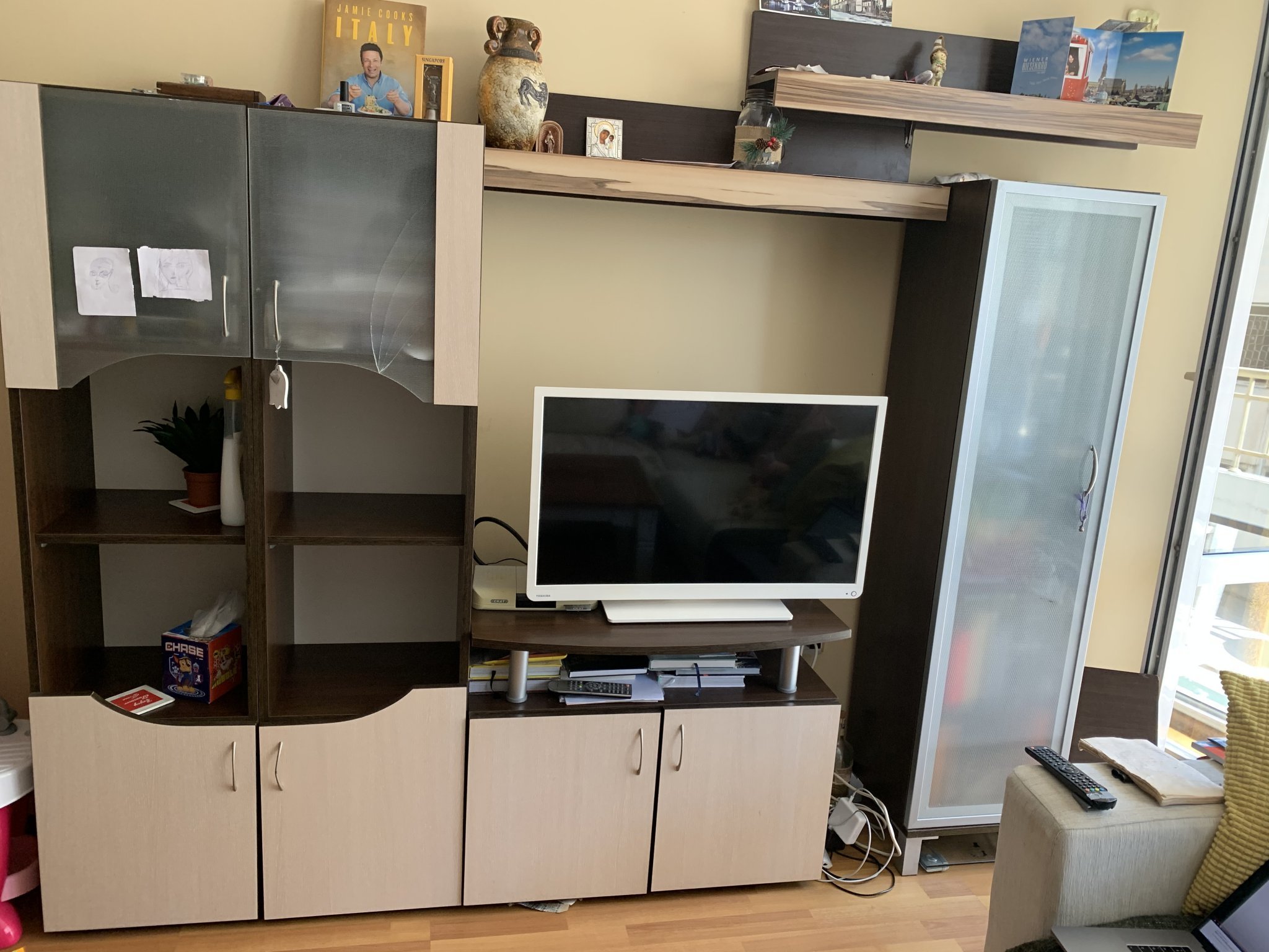 П.С Tonito, сега видях въпроса за гърба . Предполагам за този зад телевизора питаш. Дъски от палети са това. Залепихме ги директно за стената с Moment fix super 😊. Идеята е тази акцентна стена да продължи до тавана, но първо трябва да се снабдим с палети. 😁