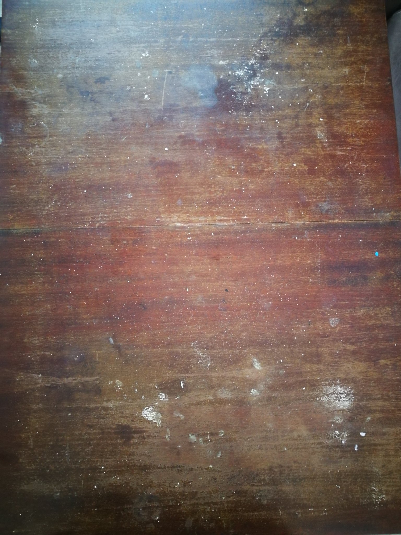 Масата е здрава и стабилна и ние си я ползваме по предназначение, но когато вдигна покривката и лошо ми става. Не мога да я гледам такава ....