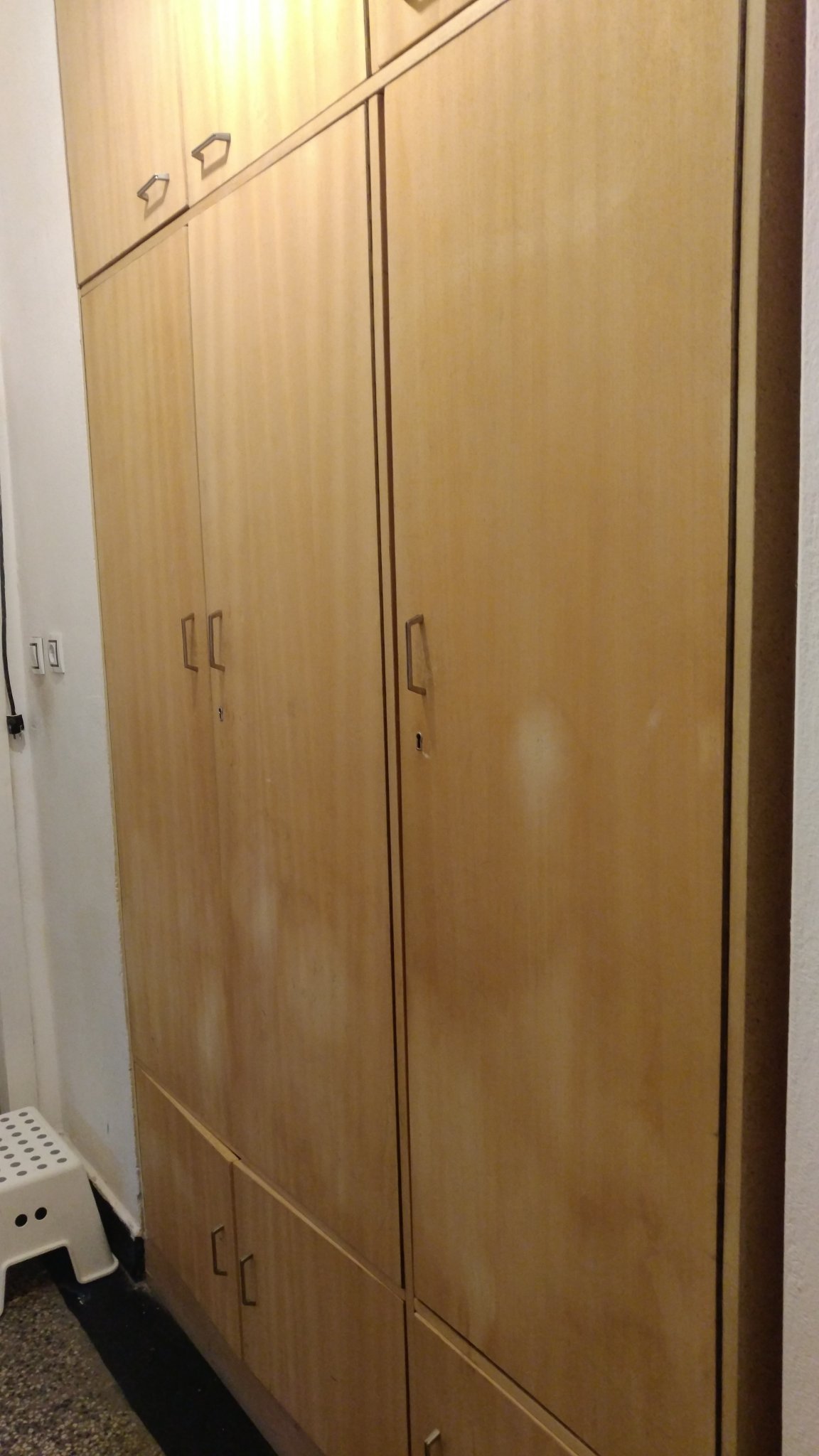 Пореден въпрос - този гардероб не го знам от какво е, талашит ли, но не е обработван с нищо. Белите петна са от почистване на детски драсканици. Направо бия ли да слагам? Сигурно грунд и после боя Simple Smile