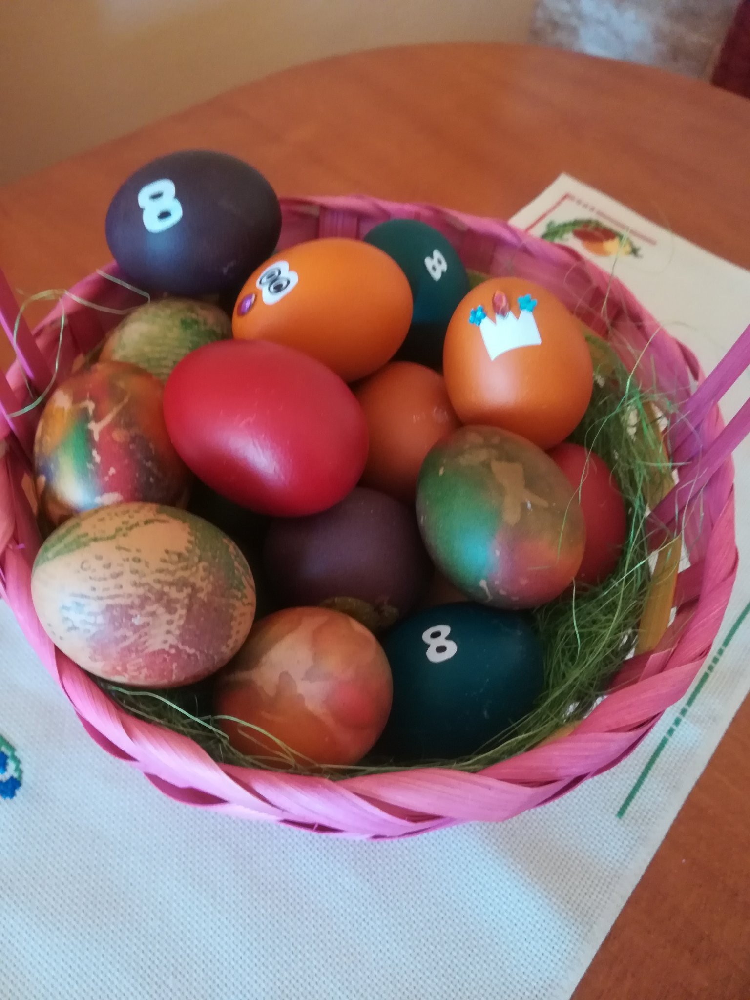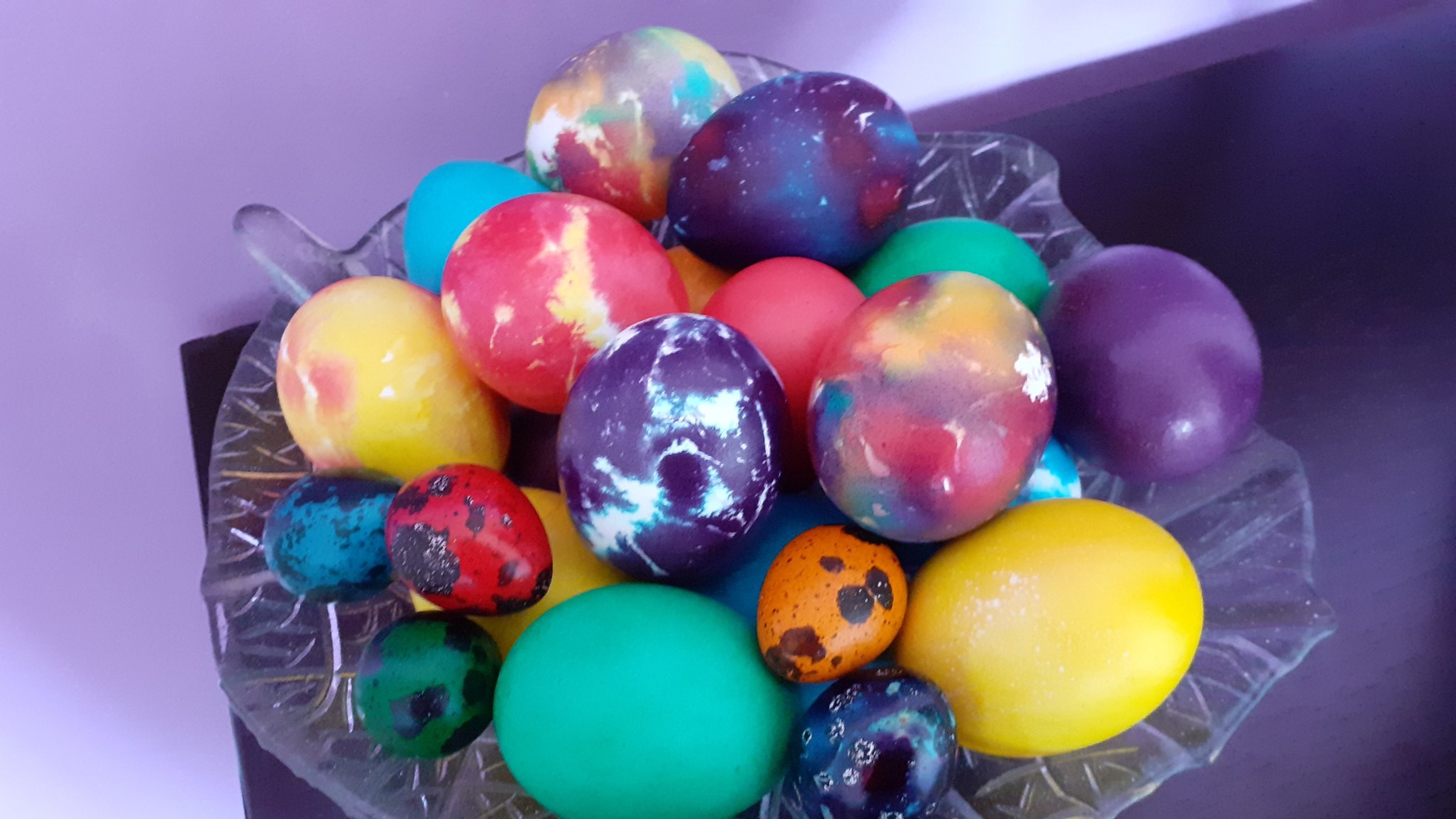 Яйцата са готови... аз само ги варих, дъщерята и внучката ги боядисваха. Не искали шарени, не ги лъснаха с олио. Worried А пък на мен никак не ми е празнично, няма да се съберем с останалите деца/голямата в Пловдив, сина във Варна/. Най обикновен ден ще е утре Sad