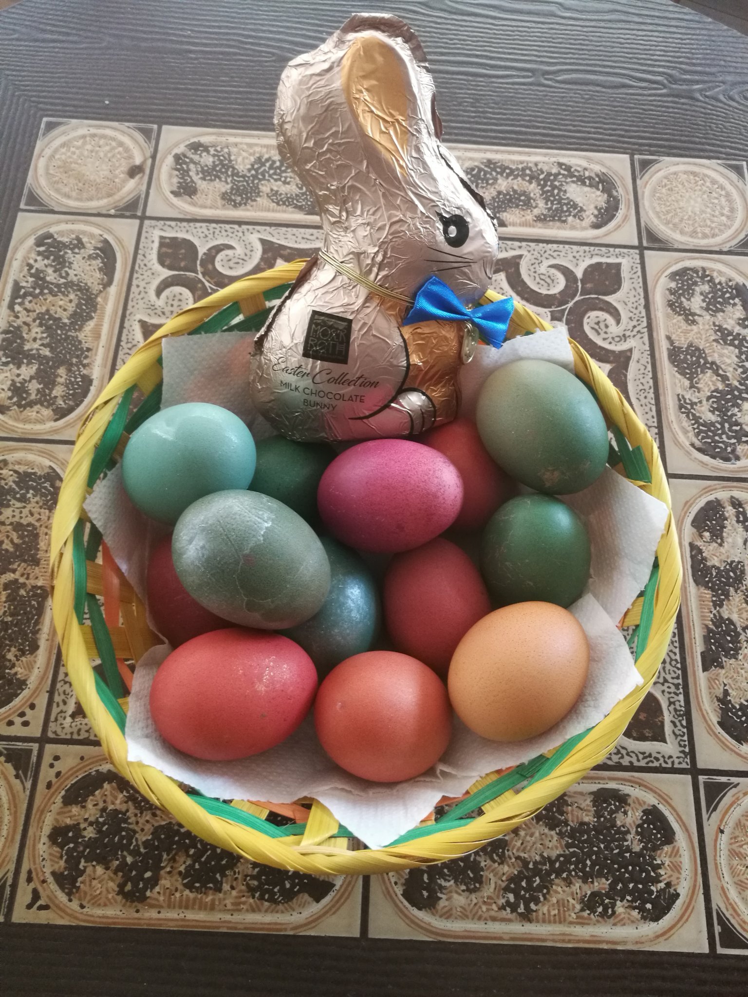 Ето и моите яйца то тук във Шотландия боя за яйца не продават тука велик ден празнуват със шоколадови яйца. Боята закупих от литовски магазин но няма нищо общо със българската боя цветовете не са наситени:blush:Animal RoosterBlush