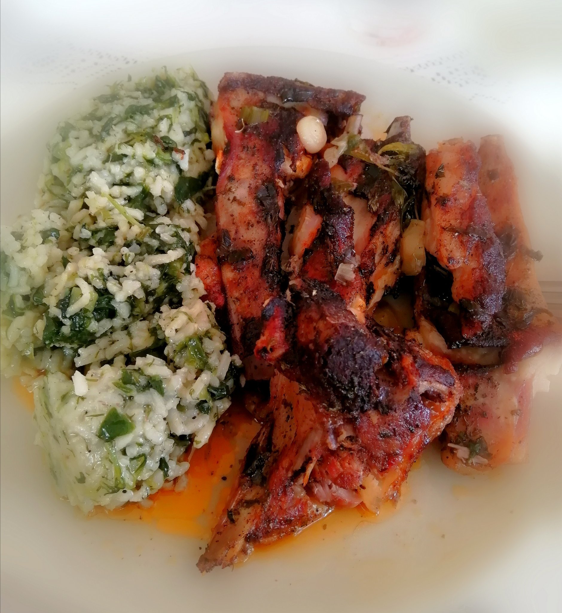 Агнешки ребра(котлети) от Лидъл, страхотни, нежни, без натрапчив аромат, с подправки, билки и масло на фурна, гарнирани с ориз със спанак. Много вкусно се получи: