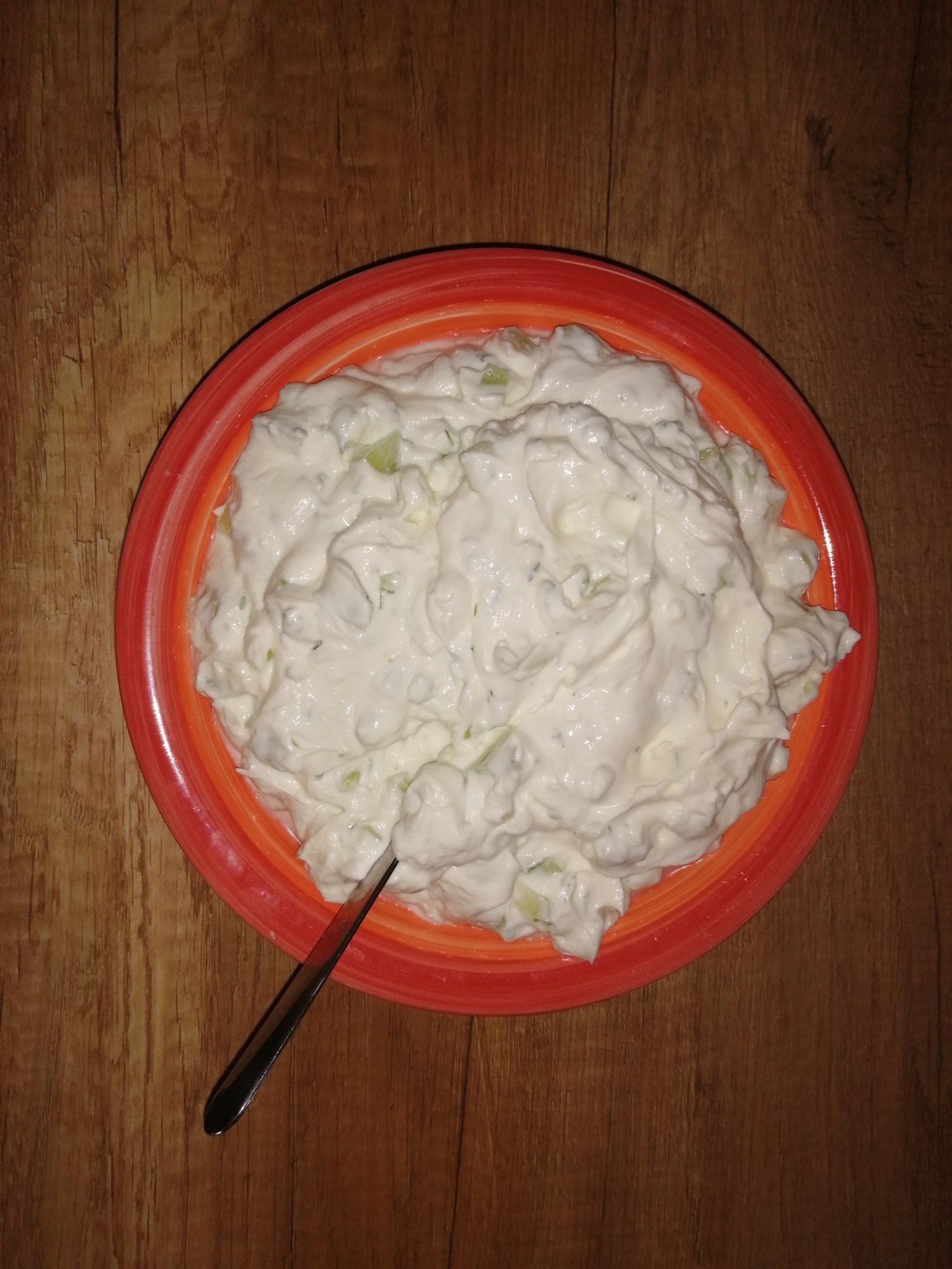 Салата с айсберг, краставица, зелен лук, пилешко и чеснов млечен сос: