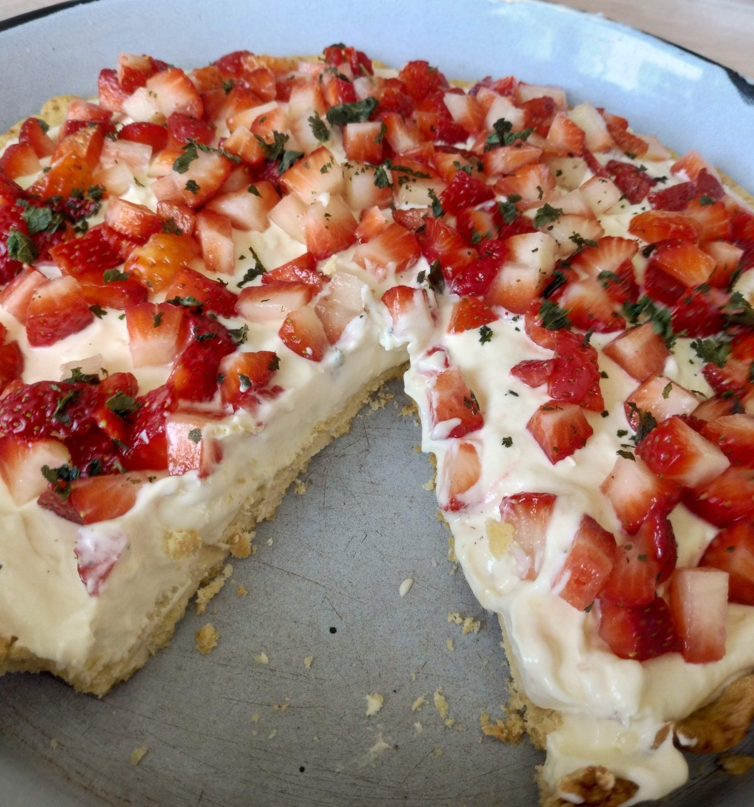 От мен един пай с крем и плодове сниман направо от не особено красивата ми тава.