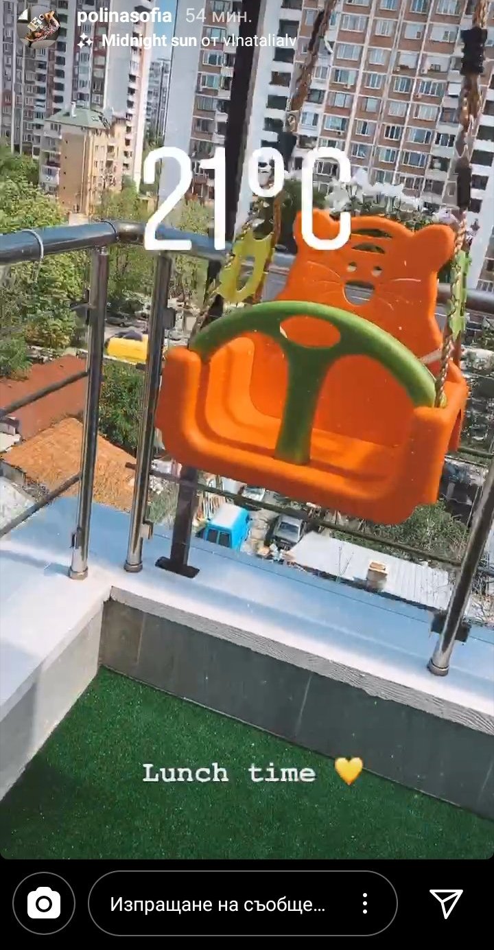 Тръпки ме побиват от тази люлка там. Бих сложила земна. Адриана също имат люлка, но вътре. Нямам някаква конкретно изразена фобия от високо, но си ми изглежда зловещо в случая. Предполагам, че няма да го люлеят в истинския смисъл на думата, а просто ще си стои и ще се полюшква от собствените си движения.