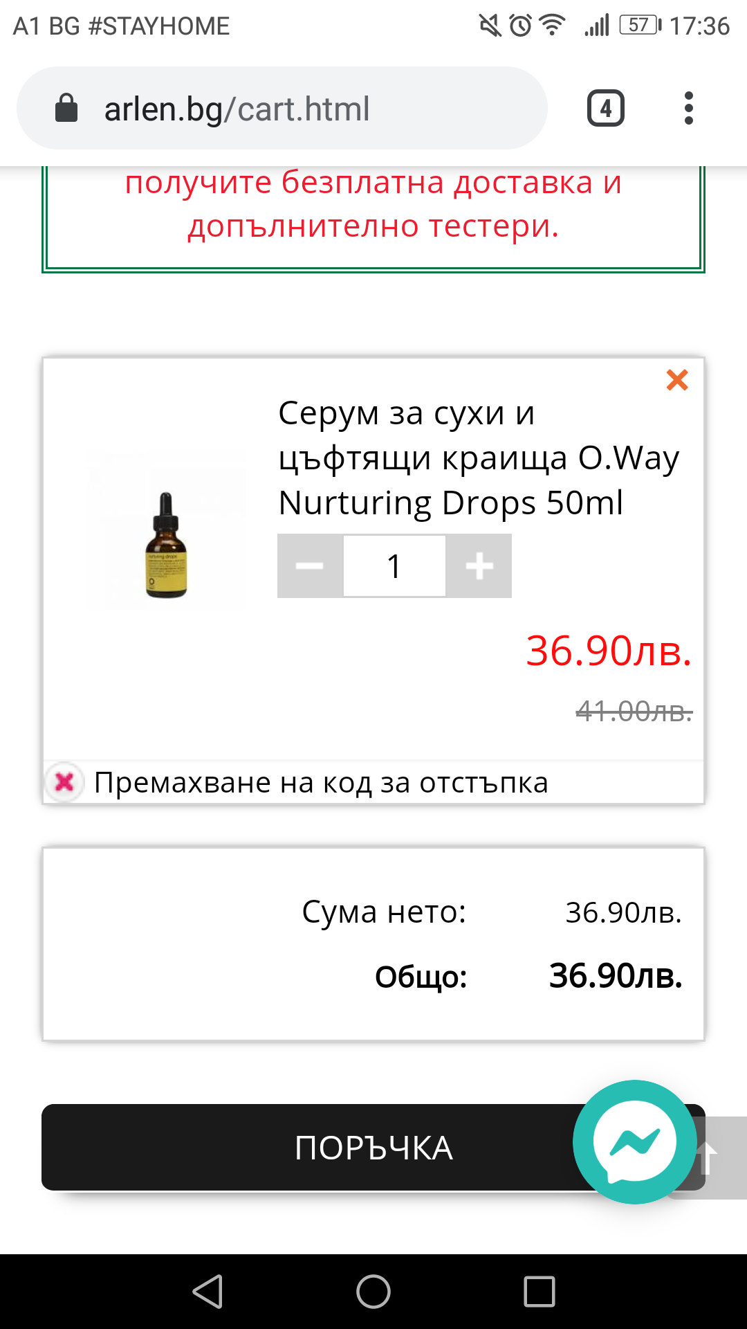 PeachHoney благодаряя🤗 и аз се поизнервих с това увеличение на oway. До онзи ден беше 38, сега 41. Току-що пуснах поръчка и пробвах кода FNL10 и ми го прие. А буквално 10 минути преди това, не го отчиташе.