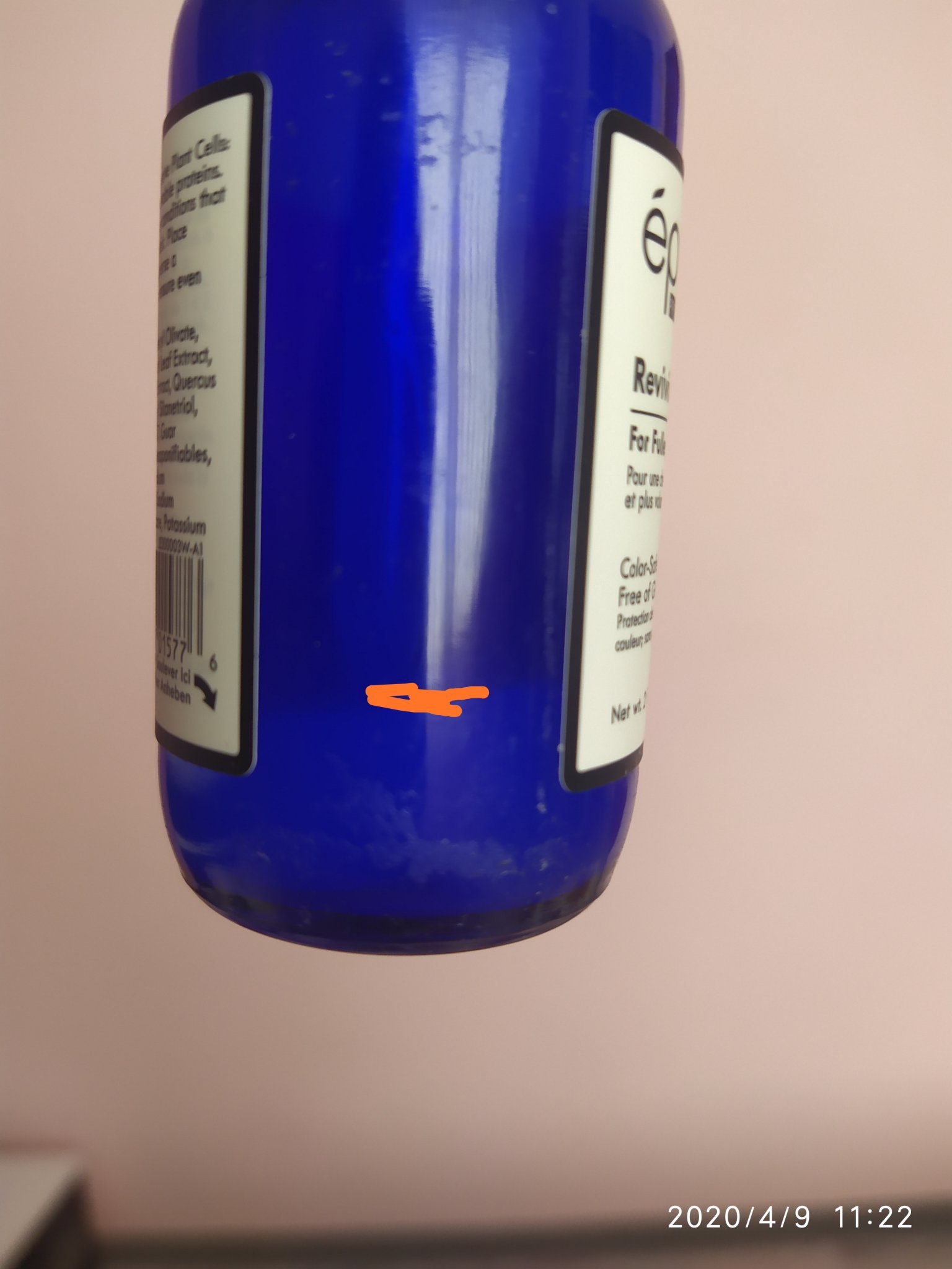Лошото е, че не погледнах количеството още при закупуване на продукта, за да знам до къде е било пълно... Имаше етикет на български, който закриваше и малката видима част. Днес го премахнах и установих, че имам толкова малко останал продукт.