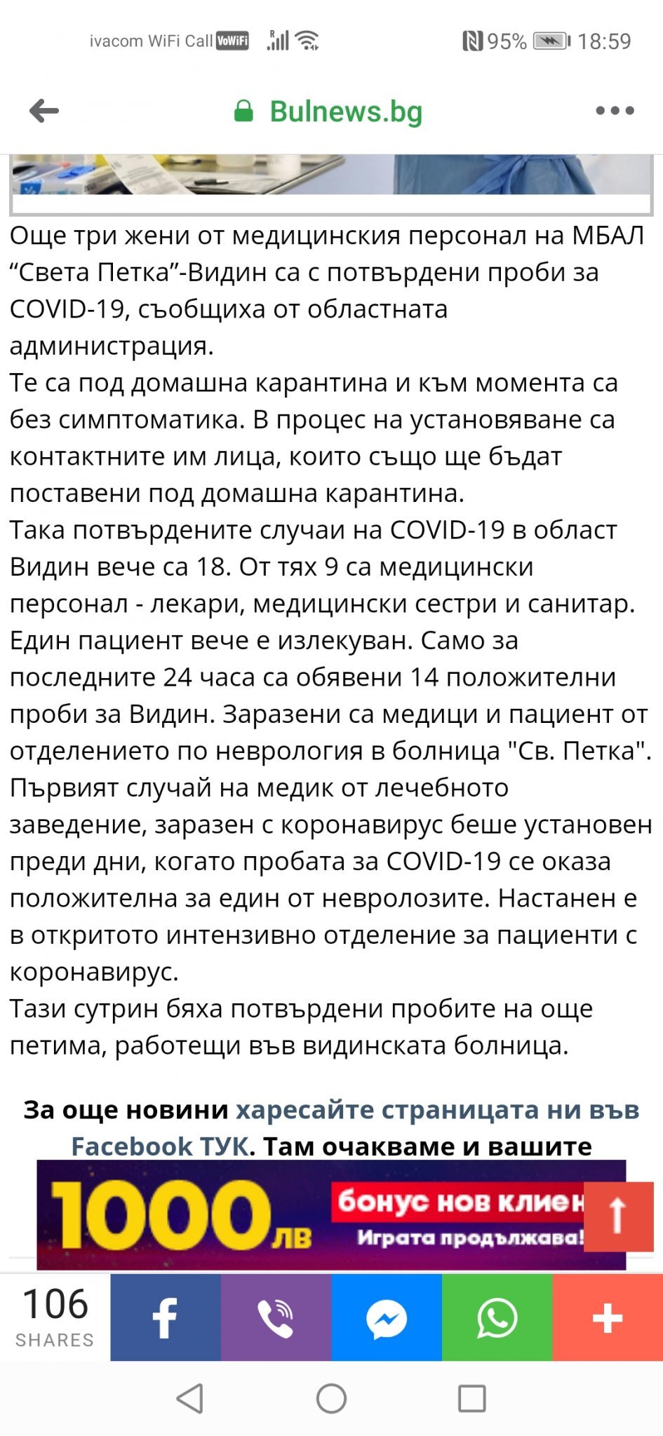 Мери надявах се да те "хвана" тук. Наистина ли са 18 случая във Видин. Това само от неврологичното отделение са или има и външни, не лекари.