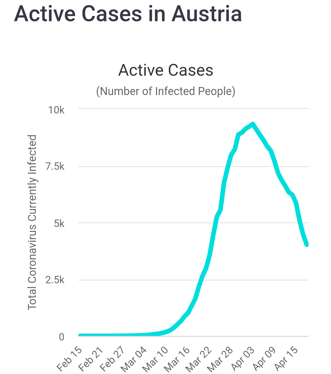 За сравнение, снимах и кривата на Австрия, която въведе на теория по меки мерки от Италия, при това седмица по-късно.