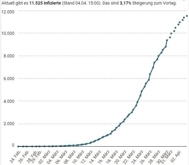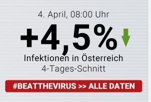 Австрия днес - среден ръстеж за 4 дена на новозаразените.