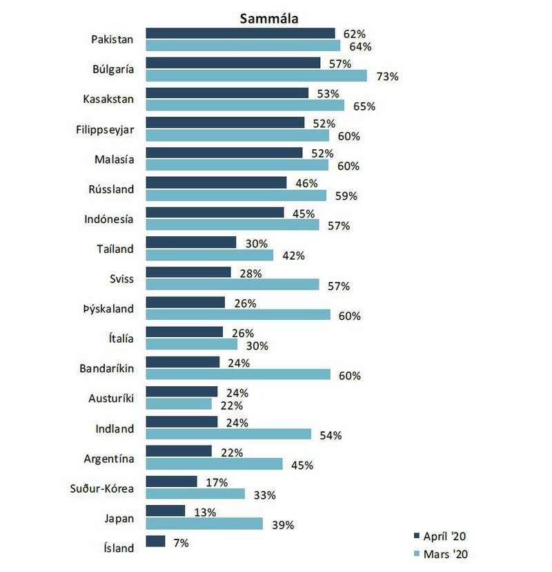 Това е проучване на Галъп, касаещо ковид, в 18 страни.  Не успях да го намеря на английски или български, та само на исландски е.