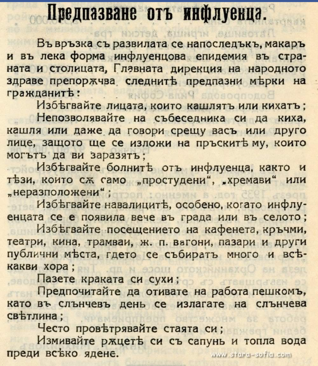 Ето какви са били препоръките на здравните власти преди 100 години:
