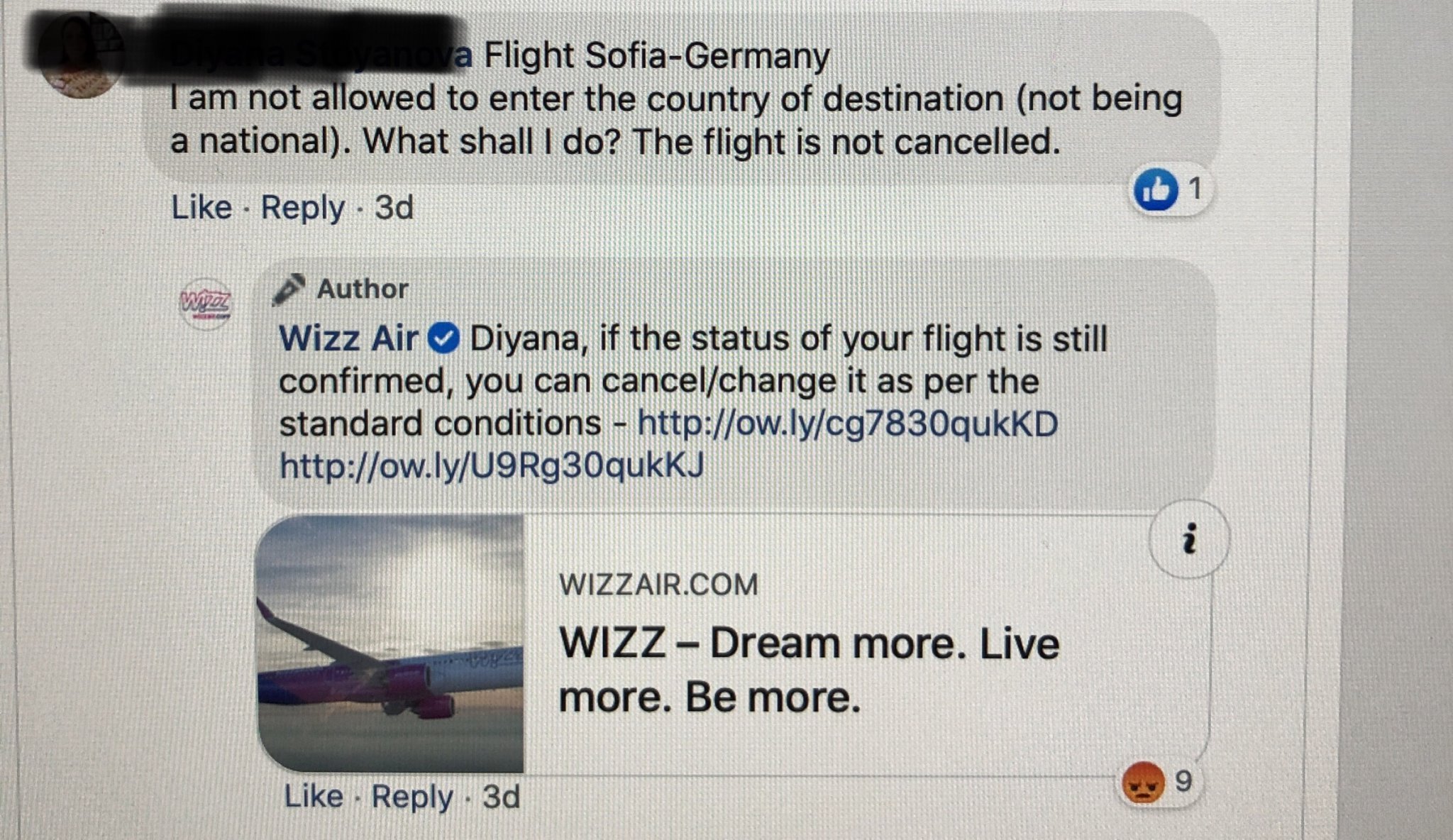 Възможно ли е да се обжалва подобна безочливост от страна на авиокомпаниите? Накратко, за неанглоговорящите: Уиз еър не отменят полетите си из Европа, а задължават хората, които не могат да влязат в страната, за която имат резервиран полет, да плащат таксите (които са немалки) за отмяна на полет.