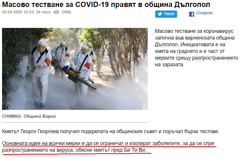 Ето как се прави по всички правила на медицинската наука. Установяват се болните, изолират се, а здравите си гледат работата. Един умен човек да има в България. Жалко че е кмет само на Дългопол, а не на цялата държава.