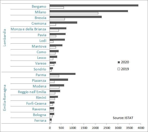 Данни за смъртността в Италия за периода 1-28 март през 2019 г. и 2020 г.: