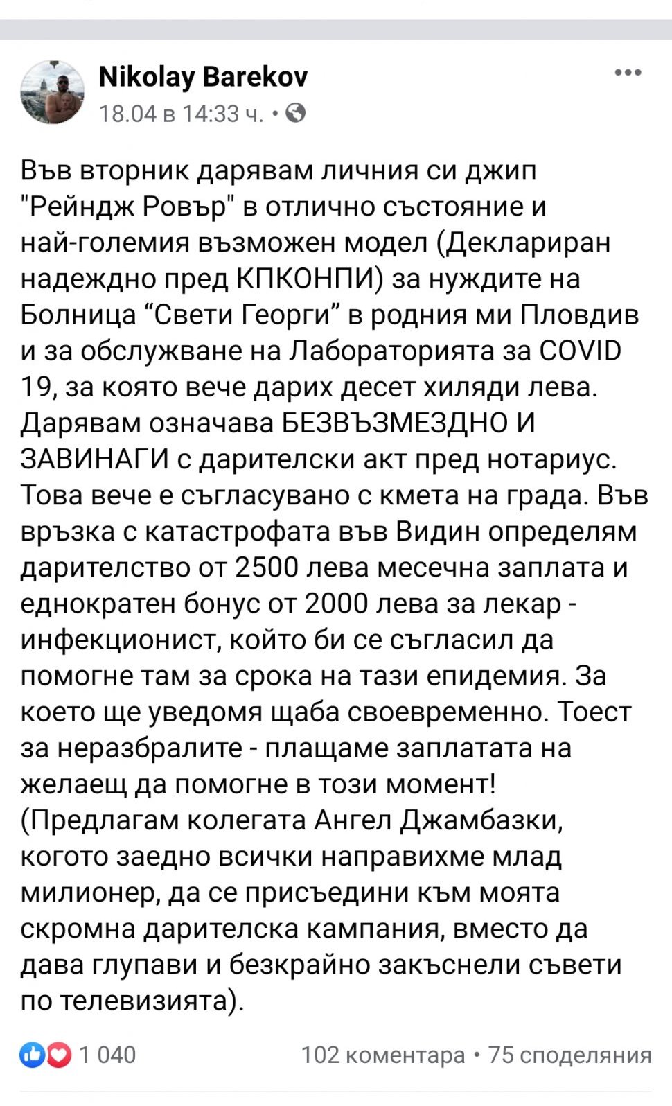 Бареков дарява заплата на лекар инфекционист,който да работи във Видинската болница.