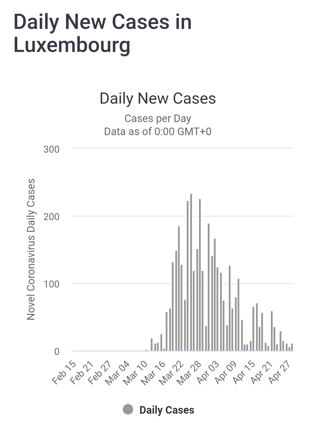 Люксембург е с население колкото Пловдив около 614 хиляди души и досега са направили около 40 хиляди теста. Имат 3741 случая и 89 смъртни случая и може да се каже, че вече са овладяли епидемията.