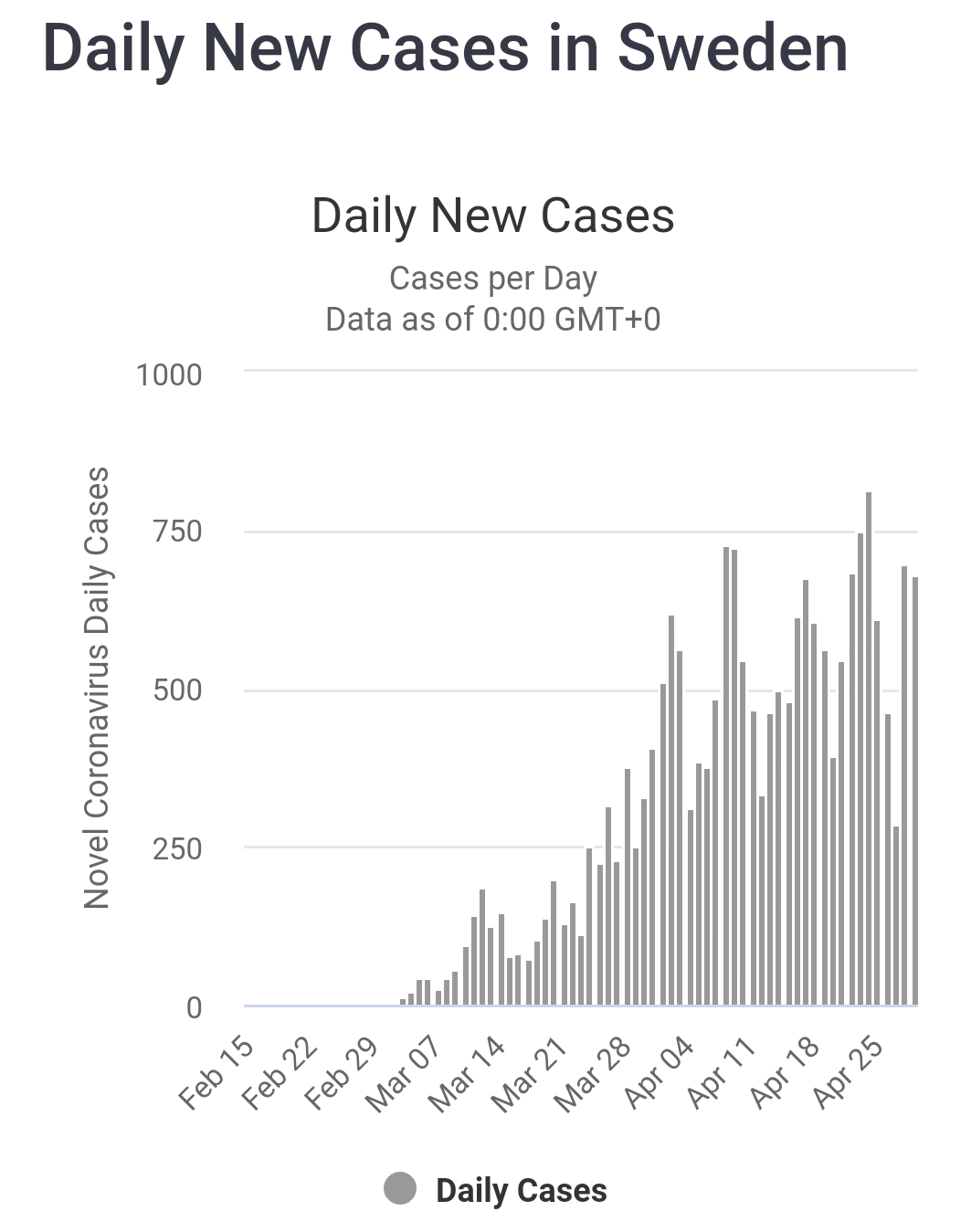 За Швеция не знам, ама в съседна Норвегия вчера са имали 1 нов смъртен случай, а днес нула, докато в Швеция за днес са 124. Т.е. ако някой почти е приключил с епидемията засега това не е Швеция.