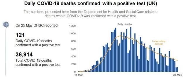 Той идва, след като броят на смъртните случаи от коронавирус във Великобритания нарасна със 121 до 36 914.