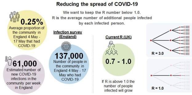 Проф. Дойл казва, че 0,25% е средната част от населението, което е имало вирус между 4-7 май. Във всяка седмица наскоро 61 000 може би са били заразени.