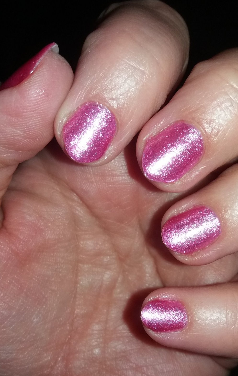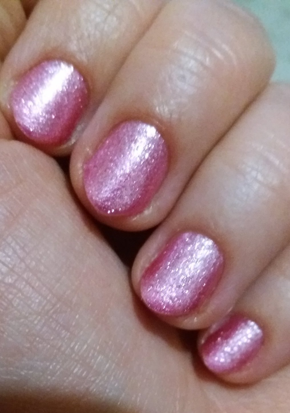 Много сладурски лак, дано да е и траен заради брокатчетата...Хубавото е, че въпреки че стана малко на чаршафи, не си личи много- толкова е лъскав този лак, че постоянно си мени отблясъците Wink