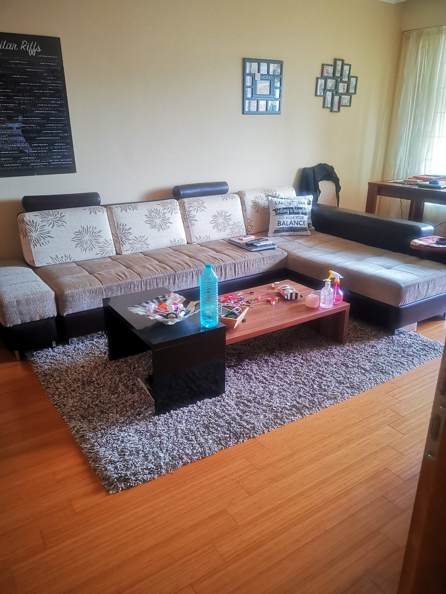 Какви цветове на стените биха били подходящи за светла стая с дамаска на дивана в зелено и кафяво?