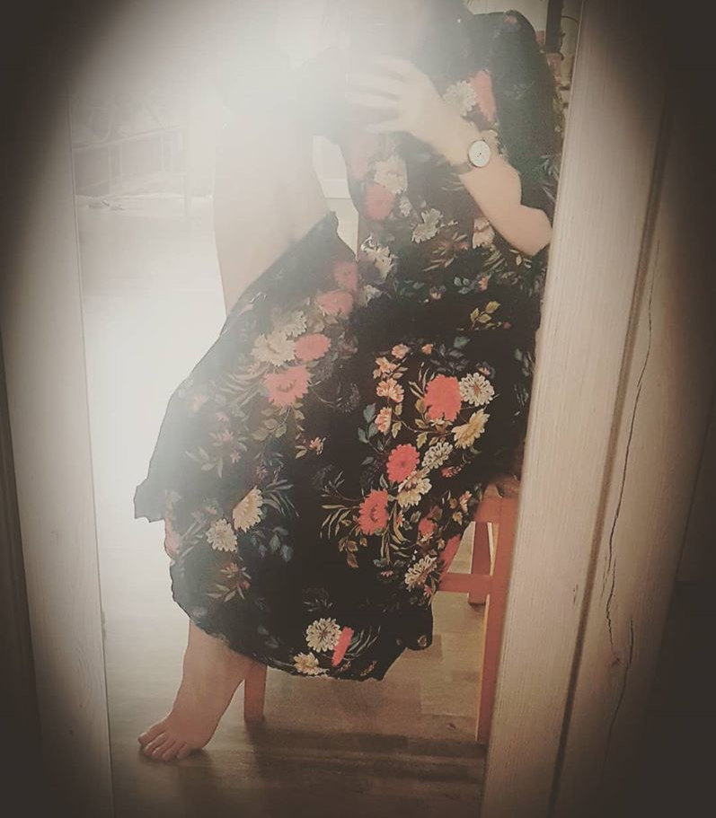 У дома комфортът ми е преди всичко, риза не слагам дори и навън. Днес съм с черна памучна рокля, свободна и до коляното.