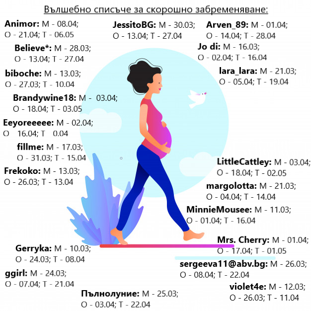 Участниците се сблъскват с трудности като физически дискомфорт, емоционални предизвикателства и стрес по време на опитите за зачеване. Те търсят подкрепа и споделят съвети как да се справят с тези трудности. Участниците също така се сблъскват с предизвикателства като спонтанни аборти, проблеми с овулацията, тромбофилния синдром, нередовния менструален цикъл, положителните и отрицателните резултати от тестовете за бременност и емоционалните трудности, свързани с процеса на зачеване.