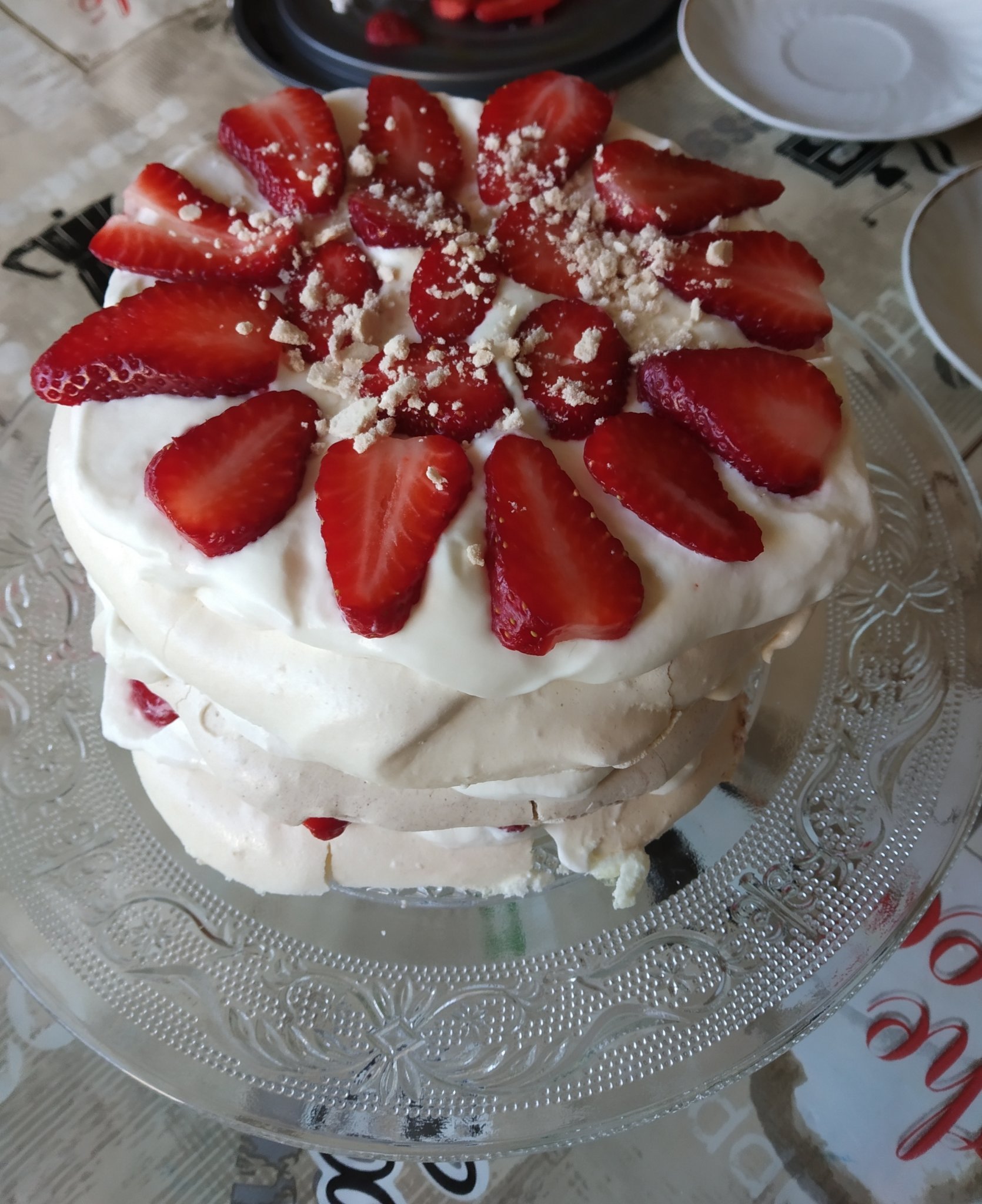 нищо и няма и като омекне, просто моделът и Simple Smile е такъв - хрупкава целувка с крем и плодове. Аз също правя едни десерти в чаши, с начупени целувки в  крема - много са си добри.