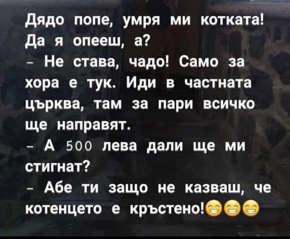 - Ти, дъще, каквото искаш обяснявай... обаче аз ЗАДЪЛЖИТЕЛНО и на деветтe, и четиридесетте дена пак съм тук.