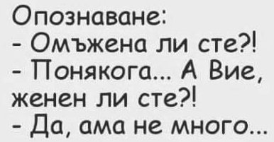 - Как се казваш? - Карамфилка... - Мъжът ти как ти вика? - Патка смотана.