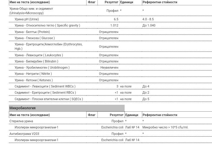Здравейте! Кръвната картина е нормална, обикновената урина - също. Интересно защо няма информация за седимента в урината - дали има бактерии, или не. От стерилната урина има изолиран микроорганизъм Е. Coli, но лечението може да се прецени в зависимост от общото състояние на детето и антибиограмата. Би трябвало прием на Креон в адекватни дози да не окаже влияние върху стойностите на чернодробните ензими.