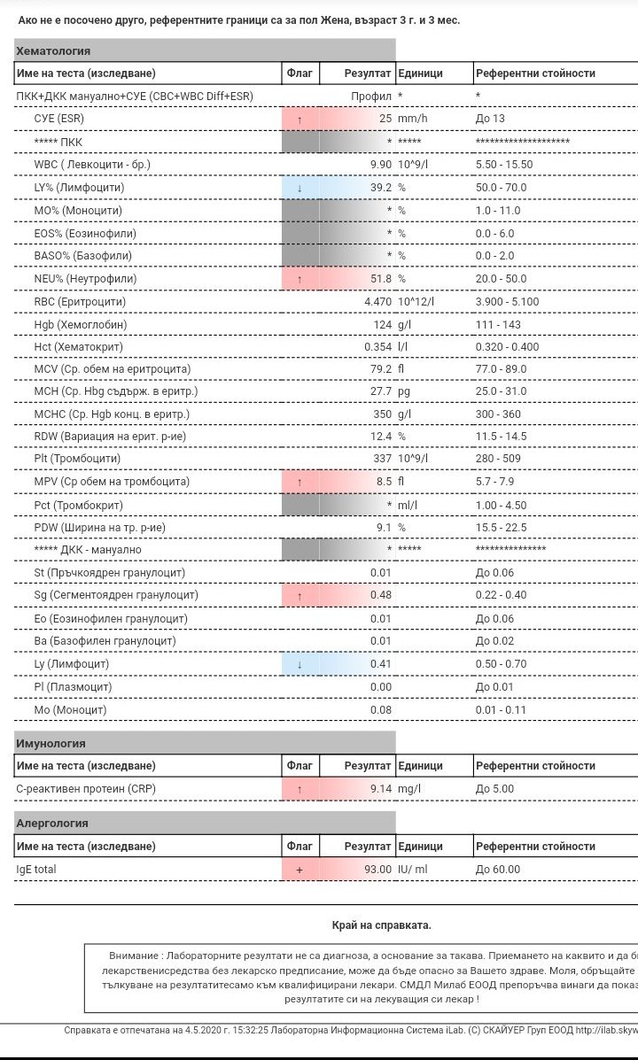 Излязоха и останалите резултати от IgE и диференциалната кръвна картина на дъщеря ми. Прилагам снимка. Може ли да ми ги разчете те, моля Ви, защото малко се стреснах, като ги видях...